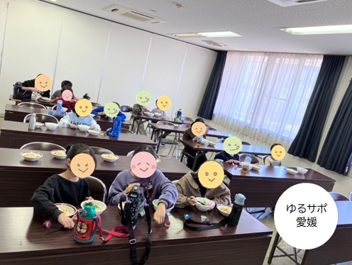 児童クラブでは、昼食にうどん/五目ご飯を作りました。余ったご飯はお土産として配りました。うどんのおかわりが多くて嬉しかったです☺